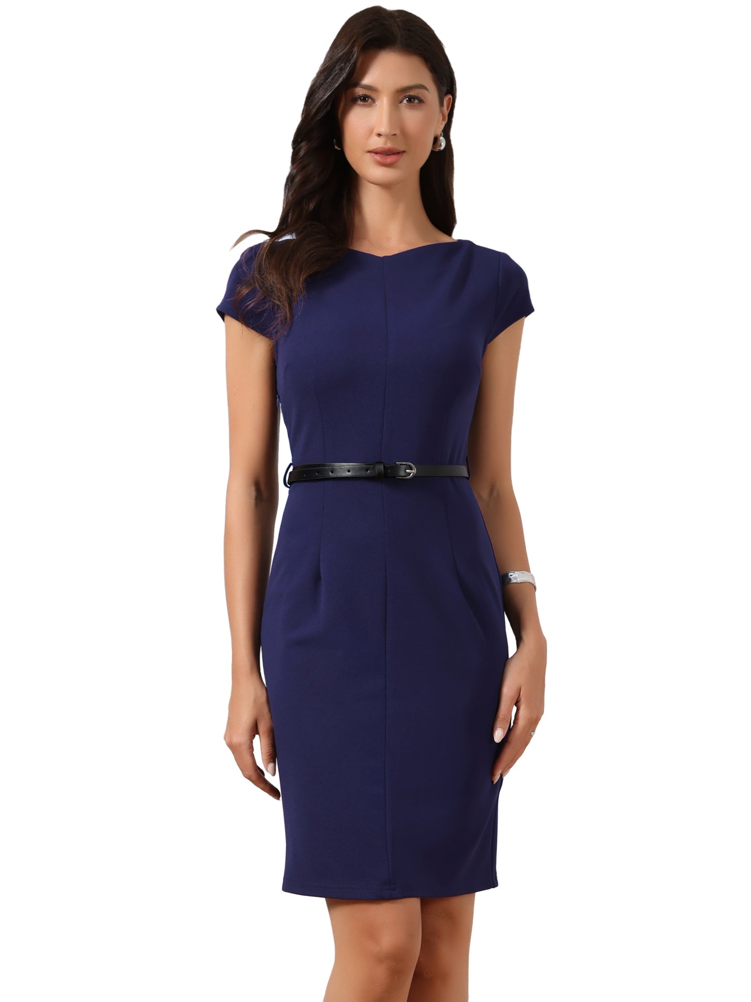 Camille Bennett | Cap Sleeve Belted Sheath Dress For Women