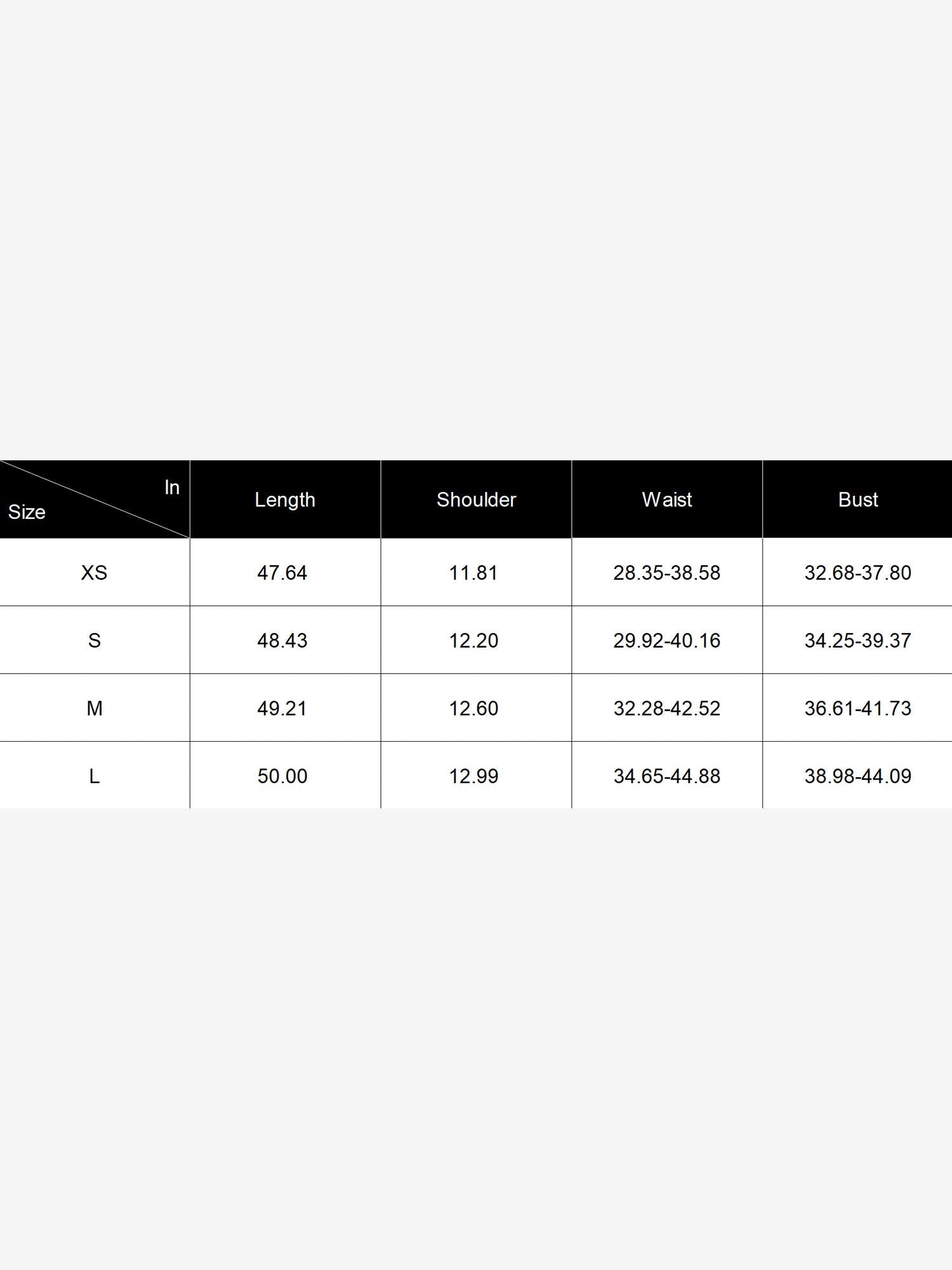 | Size | Length (cm) | Shoulder (cm) | Waist (cm) | Bust (cm) |